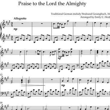A majestic and joyful piano arrangement of the beloved hymn “Praise to the Lord, the Almighty.” Designed for intermediate-advanced pianists, this arrangement preserves the hymn’s familiar and uplifting tune while enhancing it with rich harmonies, thoughtful accompaniment textures, and expressive dynamics. The piece celebrates God’s majesty, providence, and goodness with music that feels both joyful and reverent — perfect for worship services, recitals, holiday programs, or reflective personal performance.